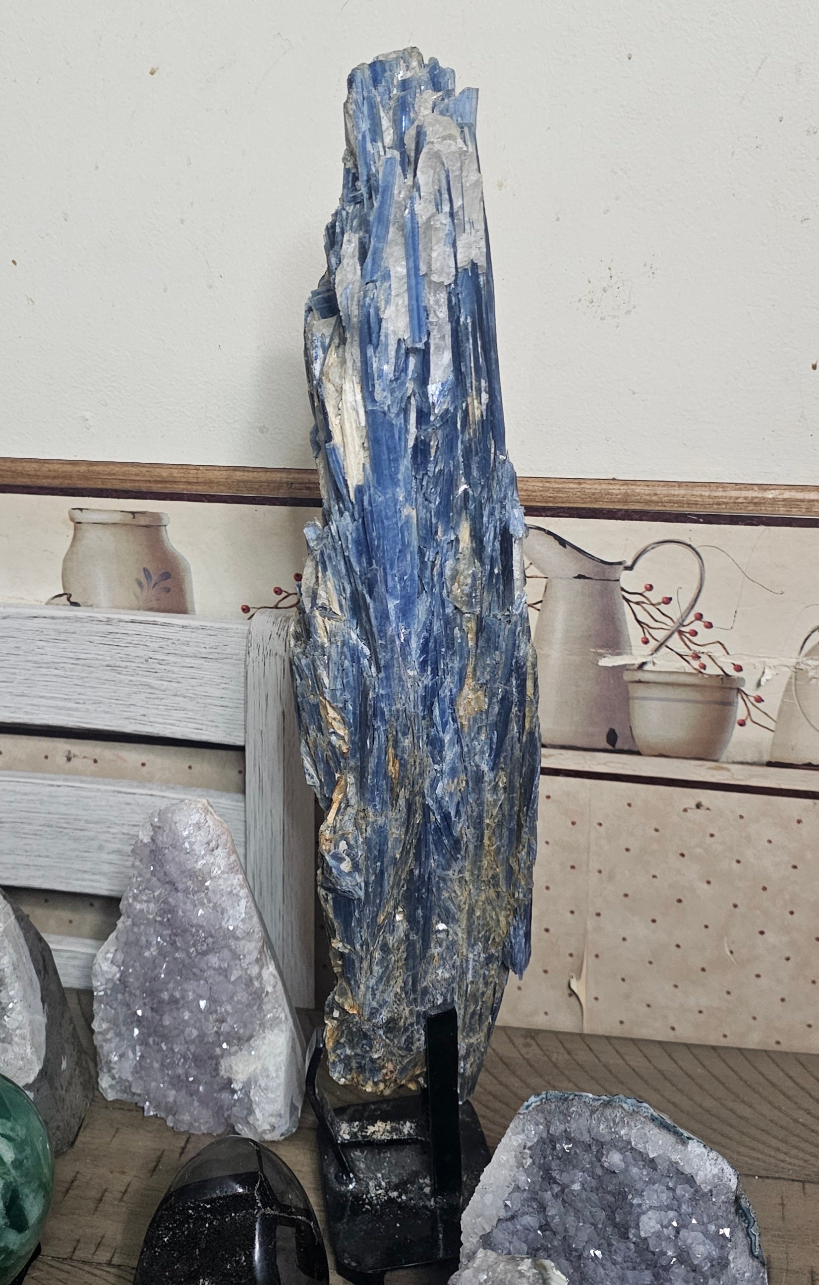 This high-quality large Blue Kyanite specimen is ethically sourced and comes with a display stand. Perfect for collectors or as a beautiful addition to home decor. Enjoy free shipping and careful packaging for a worry-free delivery experience!